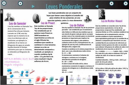 Las leyes ponderales son un conjunto de leyes que tienen como objetivo el estudio del peso relativo de las sustancias ,en una reaccion quimica ,entre 2 o mas elementos quimicos .