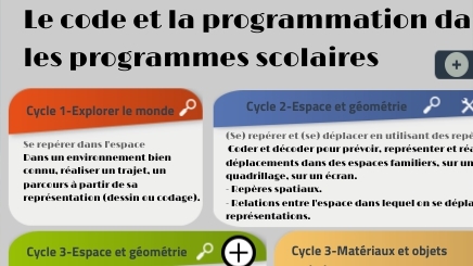 (Se) repérer et (se) déplacer dans l'espace en utilisant ou en élaborant des représentationsAccomplir, décrire, coder des déplacements dans des espaces familiers.Programmer les déplacements d'un robot ou ceux d'un personnage sur un écran.