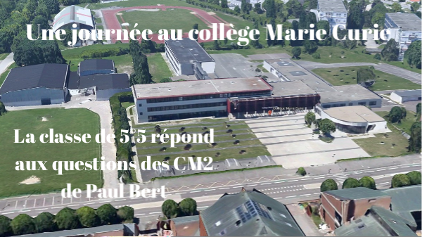 Tu as maintenant terminé ta journée en compagnie des 5°5 qui espèrent avoir répondu à tes questions et te souhaitent une bonne rentrée au collège Marie Curie !