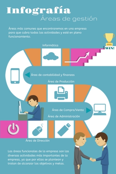 Áreas más comunes que encontraremos en una empresa para que cubra todas las actividades y esté en pleno funcionamiento.