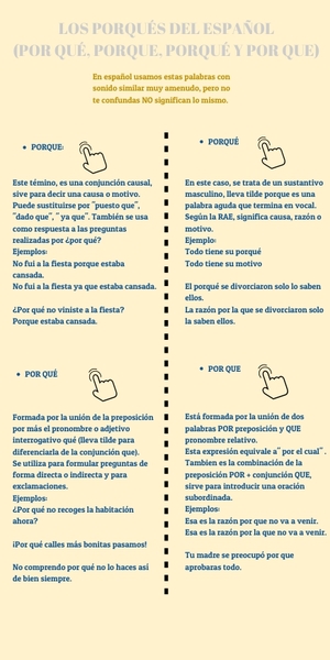 LOS PORQUÉS DEL ESPAÑOL(POR QUÉ, PORQUE, PORQUÉ Y POR QUE)