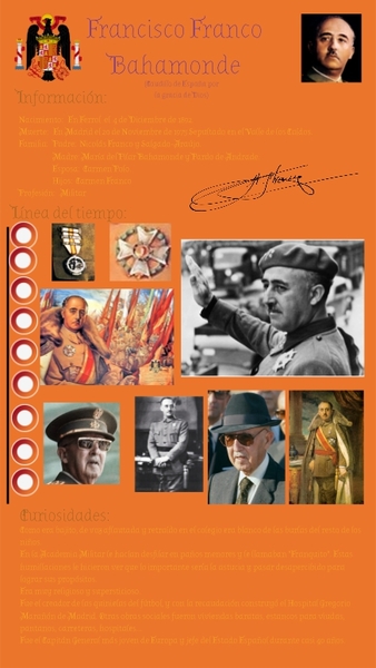 Nacimiento: En Ferrol el 4 de Diciembre de 1892.Muerte: En Madrid el 20 de Noviembre de 1975 Sepultado en el Valle de los Caídos. Familia: Padre: Nicolás Franco y Salgado-Araújo. Madre: María del Pilar Bahamonde y Pardo de Andrade. Esposa: Carmen Polo. Hijos: Carmen Franco Profesión: Militar