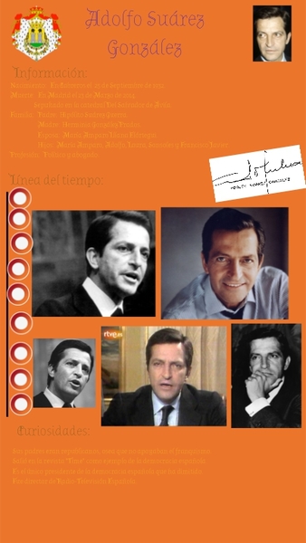 Sus padres eran republicanos, osea que no apoyaban el franquismo.Durante su primera campaña electoral las mujeres se volcaron con él gracias a su físico.Salió en la revista "Time" como ejemplo de la Democracia española. 23 febrero de 1981 durante el Golpe de Estado de Tejero, se quedó en pie. Es el único presidente de la democracia española que ha dimitido. Fue director de Radio-Televisión Española durante el franquismo.