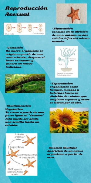 -Gemación Un nuevo organismo se origina a partir de una vena o brote, despues el brote se separa y genera un nuevo individuo.