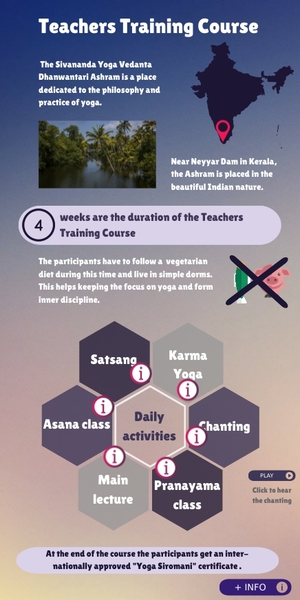 The participants have to follow a vegetarian diet during this time and live in simple dorms. This helps keeping the focus on yoga and form inner discipline.