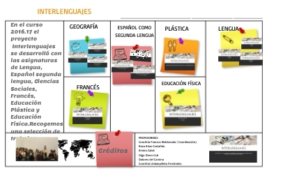 En el curso 2016.17 el proyecto Interlenguajes se desarrolló con las asignaturas de Lengua, Español segunda lengua, Ciencias Sociales, Francés, Educación Plástica y Educación Física.Recogemos una selección de trabajos.