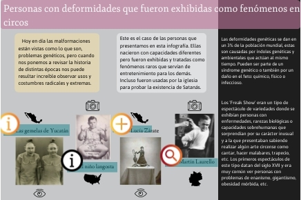 Este es el caso de las personas que presentamos en esta infografía. Ellas nacieron con capacidades diferentes pero fueron exhibidas y tratadas como fenómenos raros que servían de entretenimiento para los demás. Incluso fueron usadas por la iglesia para probar la existencia de Satanás.