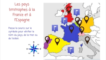 Passe la souris sur le symbole pour vérifier le nom du pays, de la mer ou de l'océan.