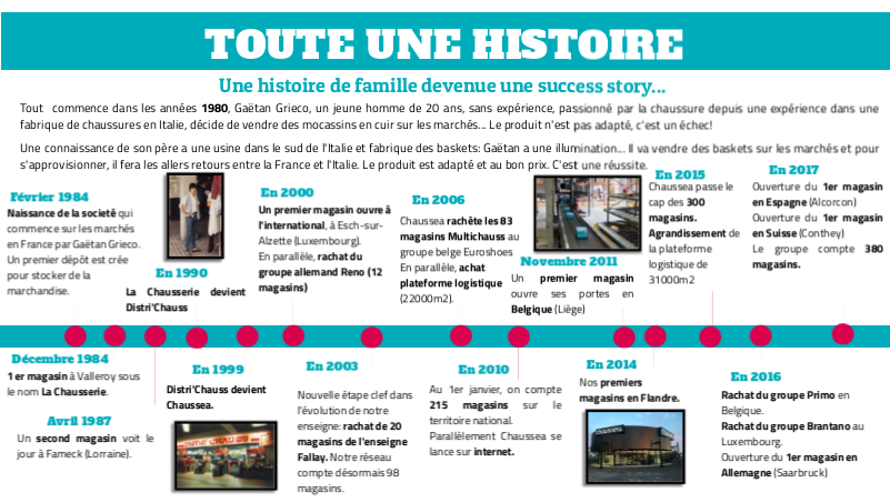 Rachat du groupe Primo en Belgique.Rachat du groupe Brantano au Luxembourg. Ouverture du 1er magasin en Allemagne (Saarbruck)