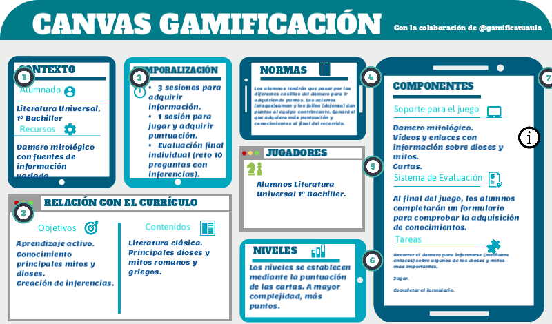 Recorrer el damero para informarse (mediante enlaces) sobre algunos de los dioses y mitos más importantes. Jugar. Completar el formulario.