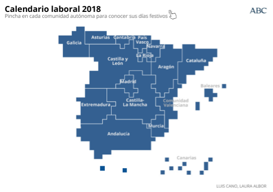 Fiestas locales. Madrid: 15 de mayo (San Isidro), 9 de noviembre (La Almudena).
