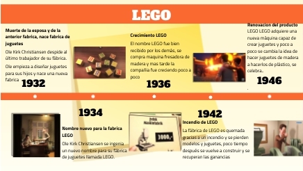 Incendio de LEGO La fábrica de LEGO es quemada gracias a un incendio y se pierden modelos y juguetes, poco tiempo después se vuelve a construir y se recuperan las ganancias Más información: https://line.do/es/linea-del-tiempo-lego/k3m/vertical/moment/4