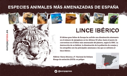 El último gran felino de Europa ha sufrido una disminución alarmante en el número de ejemplares en los últimos 50 años, hasta el punto de convertirse en el felino más amenazado del planeta, según la UINC. La destrucción de su hábitat, la disminución de la población de conejos y los atropellos son las principales amenazas a las que se enfrenta el lince ibérico.