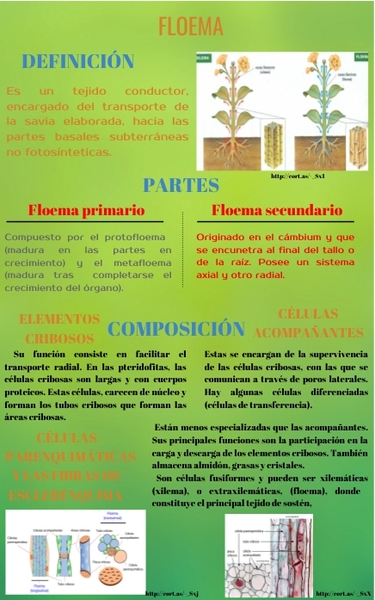 Es un tejido conductor, encargado del transporte de la savia elaborada, hacia las partes basales subterráneas no fotosínteticas.