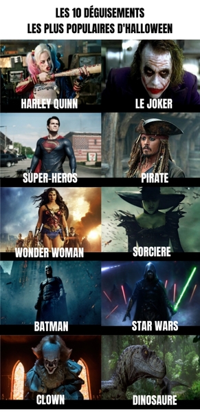 LES 10 DÉGUISEMENTSLES PLUS POPULAIRES D'HALLOWEEN