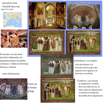 Esta justiniano a la derecha está la parte del imperio de la iglesia y la derecha a el militar