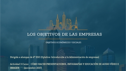 Dirigida a alumnos de 4º ESO (Optativa: Introducción a la Administración de empresas)Actividad 3 Curso: CÓMO HACER PRESENTACIONES, INFOGRAFÍAS Y EDUCACIÓN DE AUDIO VÍDEO E IMAGEN (noviembre 2017)