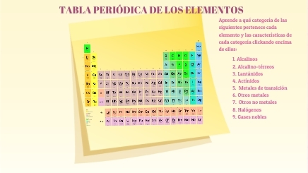 Aprende a qué categoría de las siguientes pertenece cada elemento y las características de cada categoría clickando encima de ellos: