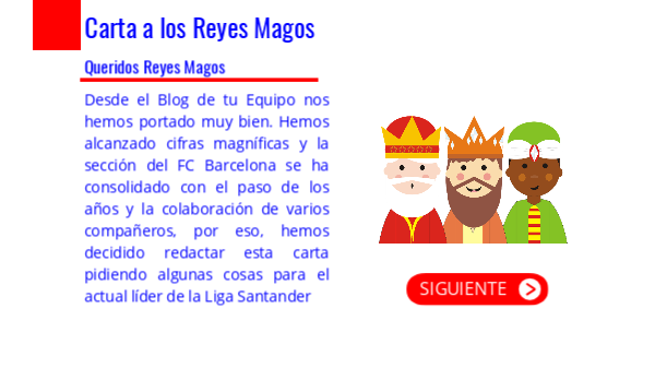 Desde el Blog de tu Equipo nos hemos portado muy bien. Hemos alcanzado cifras magníficas y la sección del FC Barcelona se ha consolidado con el paso de los años y la colaboración de varios compañeros, por eso, hemos decidido redactar esta carta pidiendo algunas cosas para el actual líder de la Liga Santander