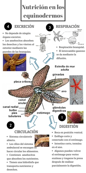 - Los cilios del sistema ambulacral se encargan de hacer circular los alimentos.