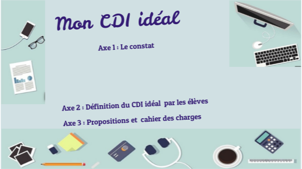 Nous avons constaté que le CDI traditionnel ne correspondait plus aux usages et aux attentes actuelles des élèves. L'objectif de ce projet était de les faire participer pour les impliquer dans la réflexion sur les transformations du CDI, selon trois axes de travail :