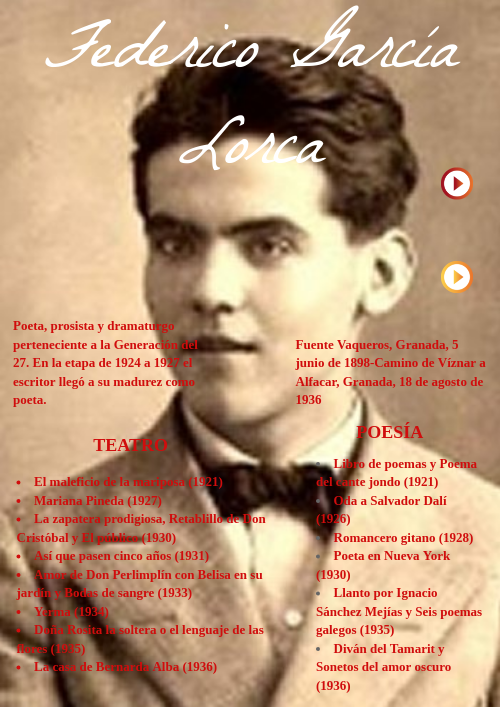 Fuente Vaqueros, Granada, 5 junio de 1898-Camino de Víznar a Alfacar, Granada, 18 de agosto de 1936