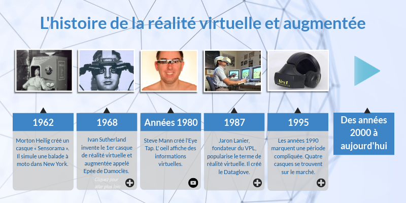 Morton Heilig créé un casque « Sensorama ». Il simule une balade à moto dans New York.