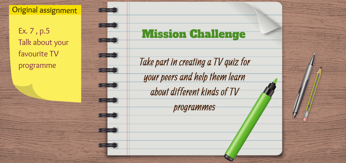 To accomplish this mission successfully you will make a short video to mock one of your favourite TV shows and take part in a TV Show Quiz.