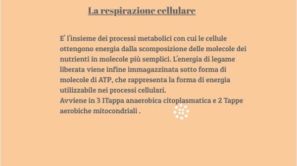 E' l'insieme dei processi metabolici con cui le cellule ottengono energia dalla scomposizione delle molecole dei nutrienti in molecole più semplici. L'energia di legame liberata viene infine immagazzinata sotto forma di molecole di ATP, che rappresenta la forma di energia utilizzabile nei processi cellulari. Avviene in 3 1Tappa anaerobica citoplasmatica e 2 Tappe aerobiche mitocondriali .