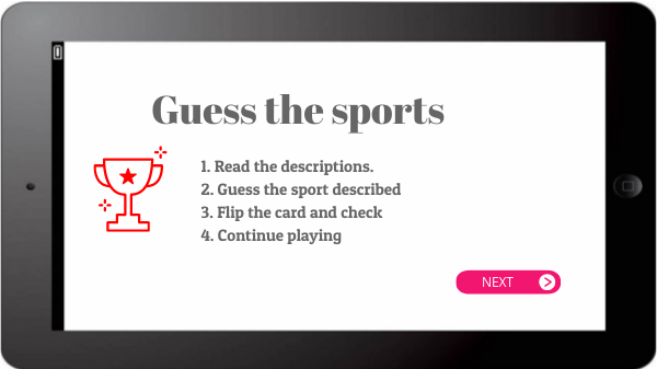 1. Read the descriptions.2. Guess the sport described3. Flip the card and check4. Continue playing