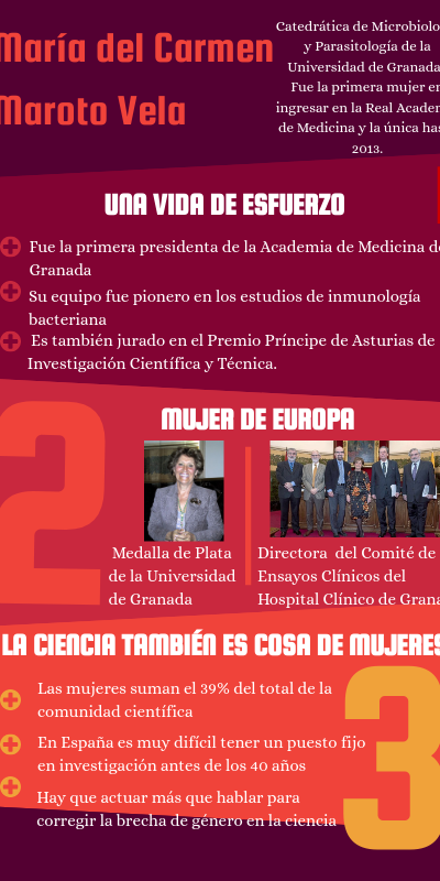 Catedrática de Microbiología y Parasitología de la Universidad de Granada. Fue la primera mujer en ingresar en la Real Academia de Medicina y la única hasta 2013.
