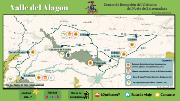 Salimos de Plasencia en la zona sur por N-630, tomamos EX-A1 dirección Coria/Portugal, hasta llegar al destino.