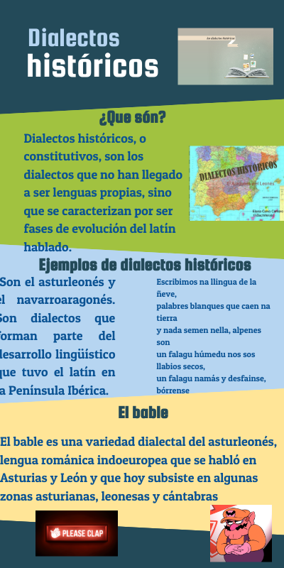 Dialectos históricos, o constitutivos, son los dialectos que no han llegado a ser lenguas propias, sino que se caracterizan por ser fases de evolución del latín hablado.
