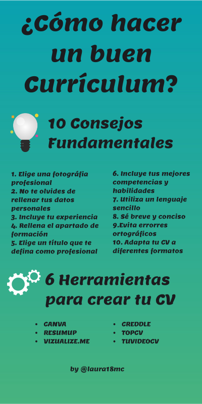 6. Incluye tus mejores competencias y habilidades 7. Utiliza un lenguaje sencillo 8. Sé breve y conciso 9.Evita errorres ortográficos 10. Adapta tu CV a diferentes formatos