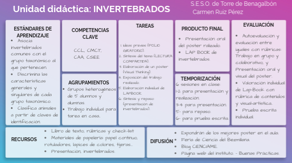 - Autoevaluación y evaluación entre iguales con rúbricas: Trabajo en grupo y colaborativo, y Presentación oral y visual del póster.