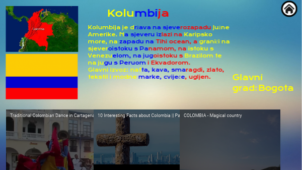 Kolumbija je država na sjeverozapadu Južne Amerike. Na sjeveru izlazi na Karipsko more, na zapadu na Tihi ocean, a graniči na sjeveroistoku s Panamom, na istoku s Venezuelom, na jugoistoku s Brazilom te na jugu s Peruom i Ekvadorom. Glavni izvoz: nafta, kava, smaragdi, zlato, tekstil i modne marke, cvijeće, ugljen.