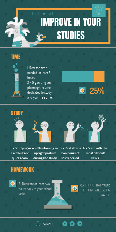 1. Rest the time needed, at least 8 hours.2. • Organising and planning the time dedicated to study and your free time.