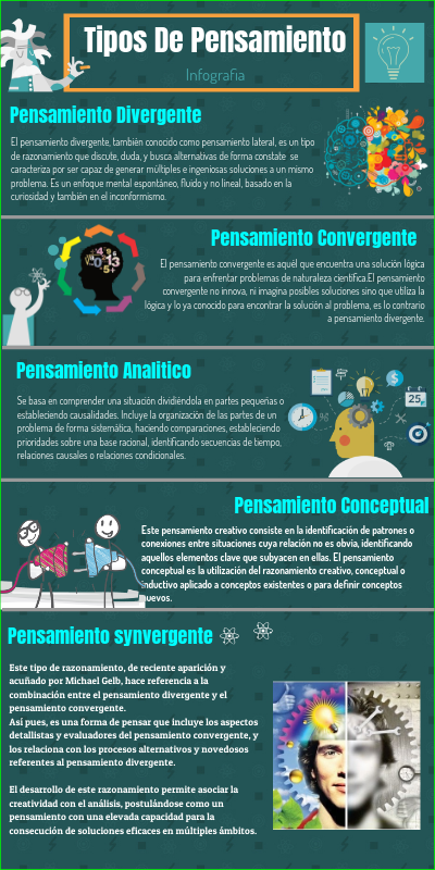 Así pues, es una forma de pensar que incluye los aspectos detallistas y evaluadores del pensamiento convergente, y los relaciona con los procesos alternativos y novedosos referentes al pensamiento divergente.