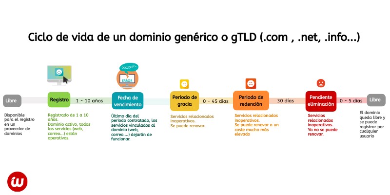 Ciclo de vida de un dominio genérico o gTLD (.com , .net, .info...)