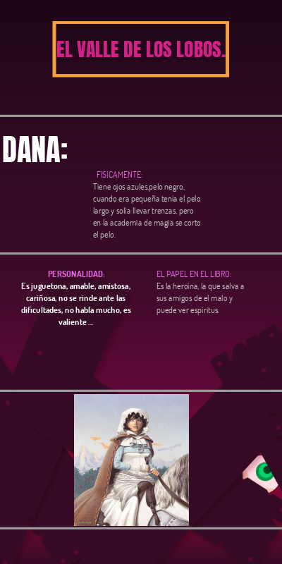 PAPEL EN EL LIBRO:Elfo que protege a la torre de los lobos y ayuda a Dana en todo y sobre todo a vencer al Maestro.