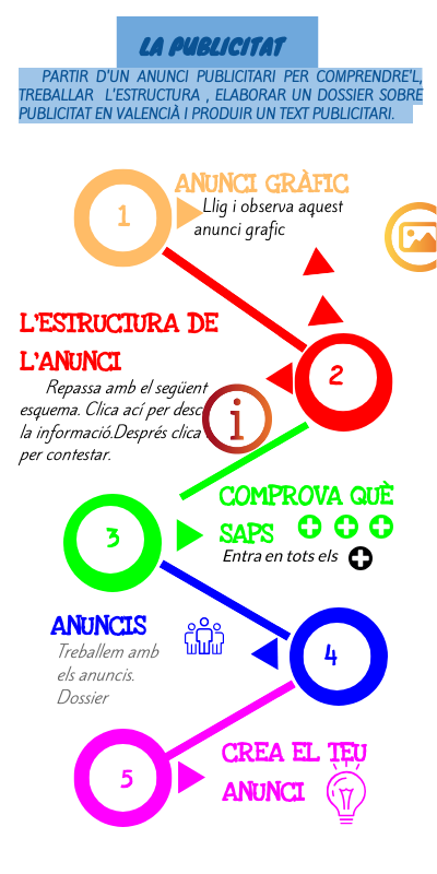 PARTIR D'UN ANUNCI PUBLICITARI PER COMPRENDRE'L, TREBALLAR L'ESTRUCTURA , ELABORAR UN DOSSIER SOBRE PUBLICITAT EN VALENCIÀ I PRODUIR UN TEXT PUBLICITARI.