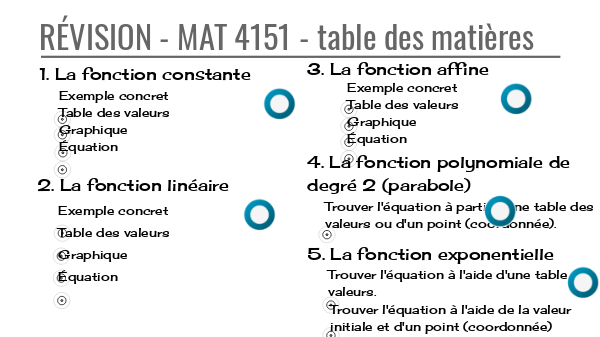 Avant de trouver l'équation, il importe de bien observer la table des valeurs. Clique sur les curseurs pour avoir des trucs pour reconnaître que la table des valeurs est bel et bien associée à une fonction polynomiale de degré 2 (parabolique).