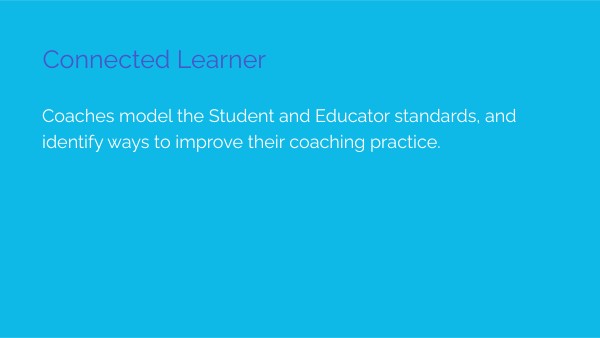 Coaches model the Student and Educator standards, and identify ways to improve their coaching practice.