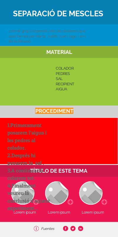 1. Primerament posarem l’aigua i les pedres al colador.2. Després hi posarem la sal .3. A continuació colarem tot.4. Finalment veureu la conclusió d’aquest experiment...