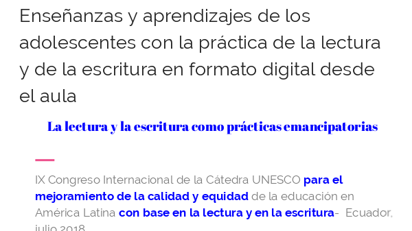 IX Congreso Internacional de la Cátedra UNESCO para el mejoramiento de la calidad y equidad de la educación en América Latina con base en la lectura y en la escritura- Ecuador, julio 2018