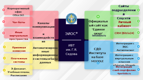 В соответствии со статьей 16 ФЗ "Об образовании в Российской Федерации" в обязательном порядке условия для функционирования ЭИОС* должны быть созданы при реализации образовательных программ с применением исключительно электронного обучения, дистанционных образовательных технологий (ЭО и ДОТ) в организации, осуществляющей образовательную деятельность. При этом в федеральных государственных образовательных стандартах высшего образования (ФГОС ВО) нет указаний о том, что ЭИОС используется только при применении исключительно ЭО и ДОТ. В соответствии с ФГОС наличие ЭИОС является одним из условий реализации образовательной программы ВО. Во ФГОС среднего профессионального образования (СПО) такое условие отсутствует. ЭИОС должна обеспечивать:ДОСТУП к учебным планам, рабочим программам дисциплин (модулей), практик, к изданиям электронных библиотечных систем и электронным образовательным ресурсам, указанным в рабочих программах; ФИКСАЦИЮ хода образовательного процесса, результатов промежуточной аттестации и результатов освоения программы бакалавриата; ПРОВЕДЕНИЕ всех видов занятий, процедур оценки результатов обучения, реализация которых предусмотрена с применением электронного обучения, дистанционных образовательных технологий; ФОРМИРОВАНИЕ ЭЛЕКТРОННОГО ПОРТФОЛИО обучающегося, в том числе сохранение работ обучающегося, рецензий и оценок на эти работы со стороны любых участников образовательного процесса; ВЗАИМОДЕЙСТВИЕ между участниками образовательного процесса, в том числе синхронное и (или) асинхронное взаимодействие посредством сети "Интернет". *ЭИОС - электронная информационно-образовательная среда - совокупность электронных информационных ресурсов, электронных образовательных ресурсов, информационных технологий, телекоммуникационных технологий, соответствующих технологических средств обеспечивающая освоение обучающимися образовательных программ в полном объеме независимо от места нахождения обучающихся