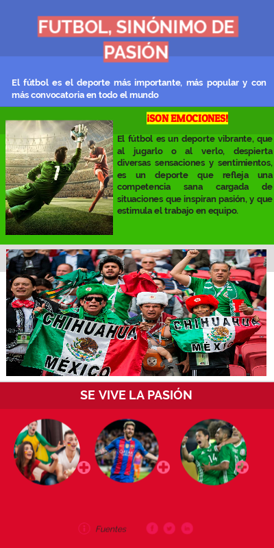 El fútbol es un deporte vibrante, que al jugarlo o al verlo, despierta diversas sensaciones y sentimientos, es un deporte que refleja una competencia sana cargada de situaciones que inspiran pasión, y que estimula el trabajo en equipo.