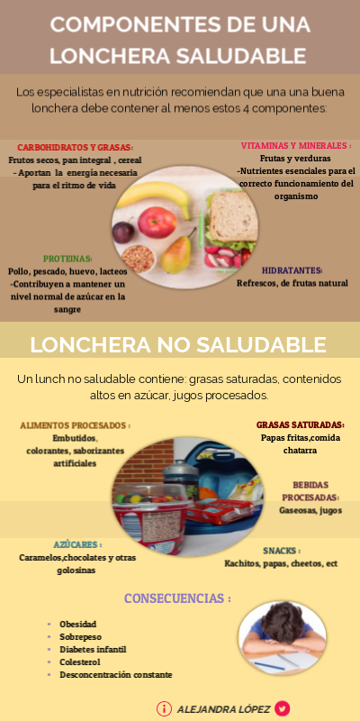 Un lunch no saludable contiene: grasas saturadas, contenidos altos en azúcar, jugos procesados.