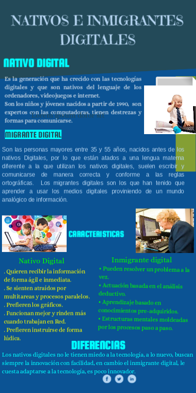 Los nativos digitales no le tienen miedo a la tecnología, a lo nuevo, buscan siempre la innovación con facilidad, en cambio el inmigrante digital, le cuesta adaptarse a la tecnología, es poco innovador.