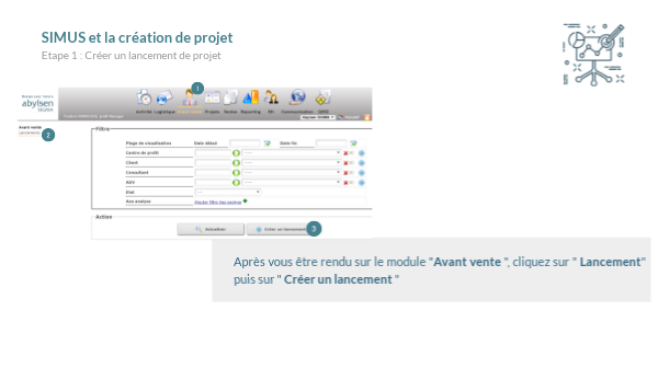 Après vous être rendu sur le module "Avant vente ", cliquez sur " Lancement" puis sur " Créer un lancement "